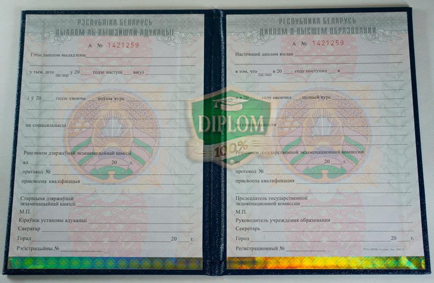 Благодаря нашей компании вы имеете возможность купить диплом в Белоруссии без усилий и больших финансовых затрат – мы предоставляем образцы оригинального бланка с Белорусской печатью. Помимо «корочек» о высшем, мы предоставляем желающим документы о средне специальном образовании.